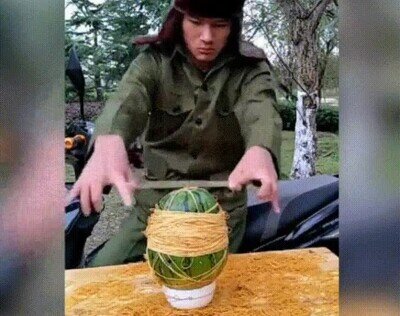 Originariamente este gif modificado del gif de la sandia (que proviene de un vídeo FAKE) se llama 'Back Bird' (juego de palabras con back fire, que viene a ser el recoil mas o menos de un arma de fuego)