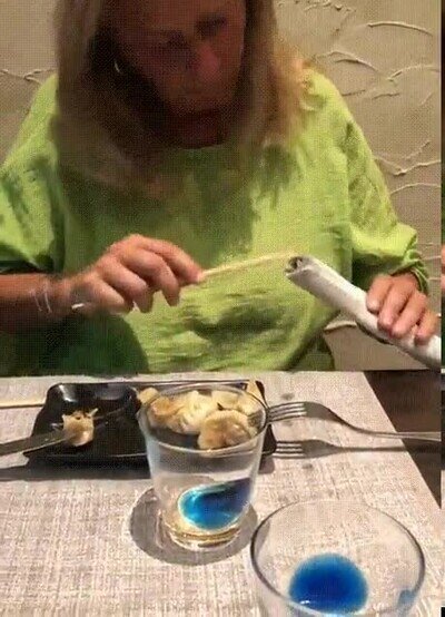 Yo comiendo con palillos chinos