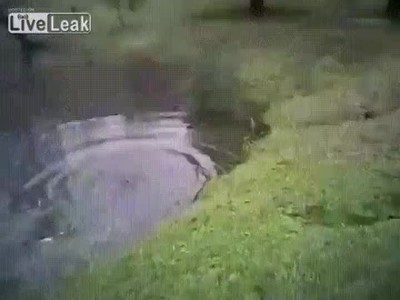 Cámara de seguridad de un guardia al ver que un niño ha caído en un lago