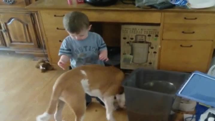 ¡Mami, déjame ayudar a dar de comer al perrito!