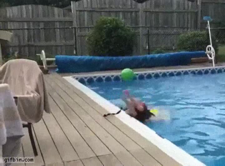 Chavales que aún tienen mucho que aprender para hacer una bomba en la piscina