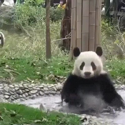 El panda se había preparado para el empujón... mira como se encoge antes de que le tire XDDDD