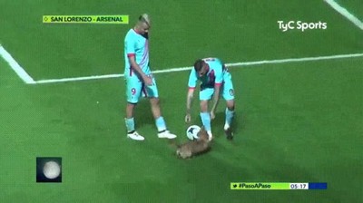 Perros con ganas de cachondeo en un campo de fútbol