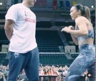 Michelle Waterson haciendo un truco con su marido