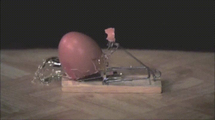 Ratonera aplastando un huevo a cámara lenta