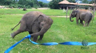 Un elefante que solo necesita una cinta para ser feliz
