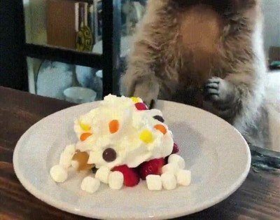 Rocket comiéndose un pastel antes de ver Infinity War