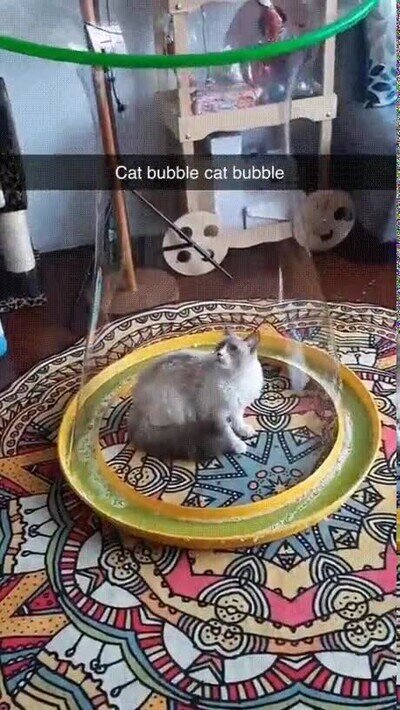 Un gato dentro de una burbuja
